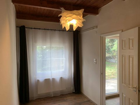A házhoz tartozik egy kisebb vendégrész is, amely teljesen szeparált bejárattal,külön mérőórákkal van elátva. A külön bejárathoz szükséges kerítés keret már elkészült, a kerítéselemek pedig az új tulajdonos ízlése szerint valósíthatók meg.Ez a megoldás ideális lehet vendégek, idősebb családtagok elhelyezésére, esetleg irodának vagy vállalkozásnak is.