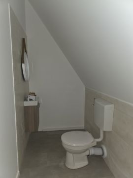 Az ingatlan elosztás: alsó szinten, 2 szoba, nappali, konyha, fürdőszoba -wc, terasz, az emeleten 2 szoba, wc található.
