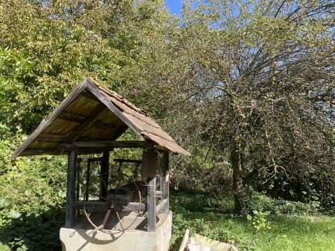 Ha elsétálunk a hosszan elnyúló 2413 nm-es telek végéig, élvezhetjük a friss levegőt, a madárcsicsergést, tervezhetjük, hol legyen kiskert vagy mit főzzünk be a gyümölcsfák terméséből később. Az évek során több gyümölcsfát ültettek: alma, dió, cseresznye bőven terem. A szőlőlugas árnyékában pedig hűsölhetünk nyáron. Az öntözést kút segíti.
