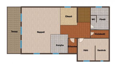 - Amerikai konyhás nappali + emeleti nappali