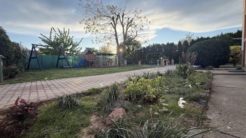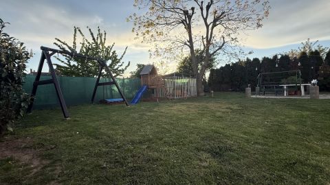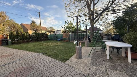 Az udvara rendezett, a telek 517 négyzetméter nagyságú, melyen egy 3 állásos lemezgarázs is helyet kapott.