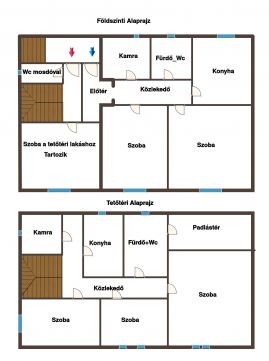 - földszinten : Wc kézmosóval, lépcsőtér előszobával és egy nappalinak használt szoba