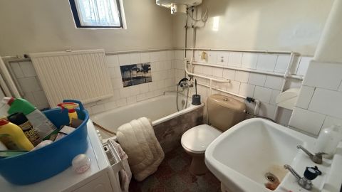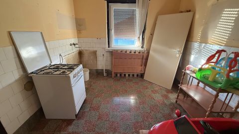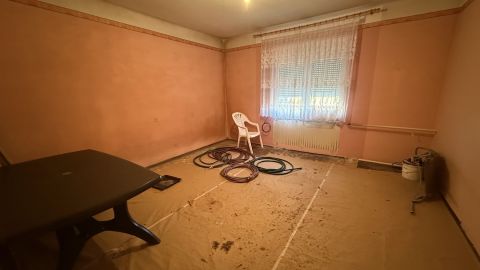 A földszinti régebbi ingatlan rész teljes egészében felújítást igényel, 81 négyzetméteres.