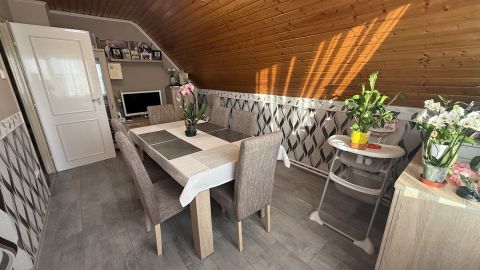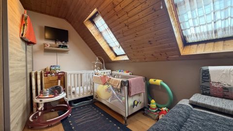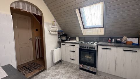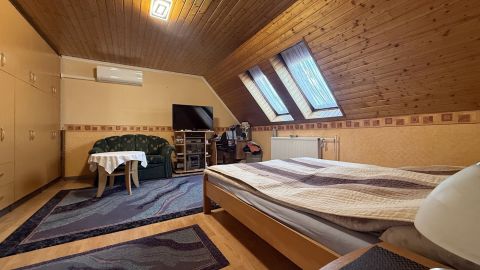 A később épült rész karbantartott szép állapotú, a legnagyobik tetőtéri szoba klímás.