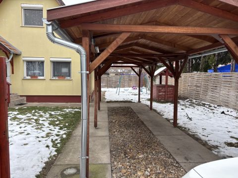 Eladó Pest-megyében, Üllőn, 294 nm-es, összközműves telken, egy 2006-os építésű, 64 nm-es, nappali + 2 szobás, tetőtér beépítéses Ikerház fél.