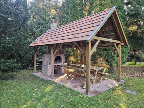 - a kert napfényes, varázslatos: a zöld környezet, ideális reggeli kávézáshoz, pihenéshez vagy esti baráti sütögetésekhez, összejövetelekhez
