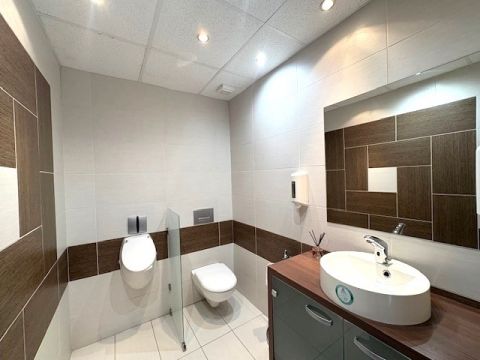 Eddig ügyvédi iroda bérelte, ennek megfelelően a berendezése is ilyen stílusú, de igény szerint bútorozatlanul is kiadó.