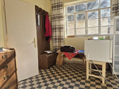 Kicsi alapterülete ellenére, jó elgondolással, elosztással megépített ingatlan. Jó méretű konyha, kamrával, kényelmes fürdőszoba, nagy, világos nappali, és még egy tágas szoba került kialakításra. A szobák igazi, hangulatos parkettával burkoltak, a többi helyiség járólappal. A dupla fa nyílászárókra redőny került felszerelésre. A tetőre cserép fedés került. Az épület hátsó részen még egy külön bejáratú helyiség is található, mely pillanatnyilag háztartási helyiségként funkcionál.