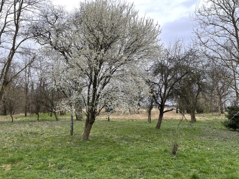A lankás telek 1237 nm-es, korábban szőlő termett itt, ma néhány gyümölcsfa mellett tudunk lesétálni a telek végében található erdős részhez illetve a patakhoz.