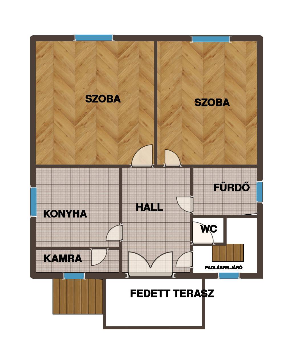 A jelenlegi 2 szobás elrendezés könnyedén átalakítható nappali + 2 szobássá, ráadásul a tetőtér beépíthető, így az ingatlan tovább bővíthető ez jelentős értéknövelő tényező.