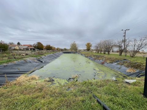 Esővízgyűjtő rendszer, halastó (felújítható), működő szivattyúk + tartalékok