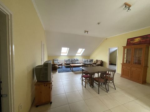 Felső szint: 120 m²-es világos, tágas lakás 3 szoba, nappali, konyha, fürdőszoba, WC, iroda
