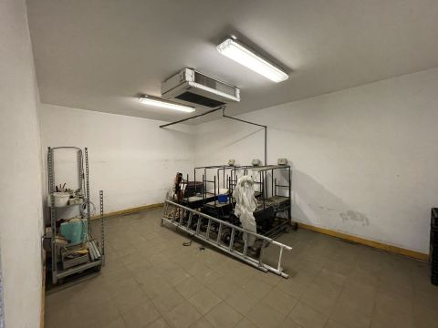 Alsó szint: 330 m² termelést kiszolgáló helyiségek: 25 raklapos hűtő, válogató tér, apríték tároló, kazánház, szociális blokkok (öltöző, zuhanyzó, WC)