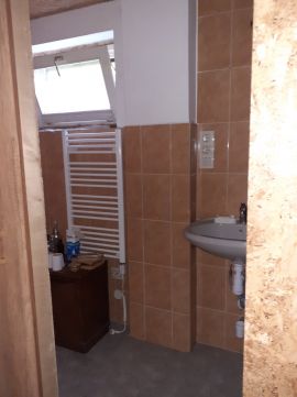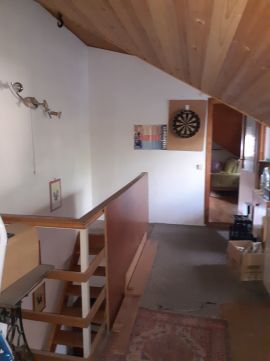 A tetőtér beépített, felérve a lépcsőn hatalmas közösségi térbe érünk, 2 lakószoba, fürdőszoba és wc került kialakításra.