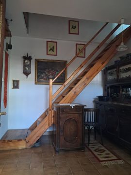 A földszinten nappali, hálószoba, konyha+étkező, kamra, fürdő+wc került kialakításra, a nappaliban kiegészítő fűtésként cserépkályha is rendelkezésre áll.