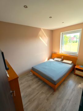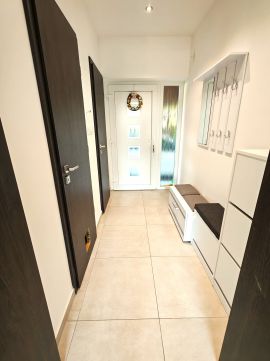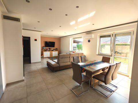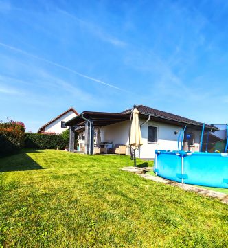 A 90 m² hasznos alapterületű családi ház egy 450 m²-es, gondosan karbantartott telken található. Déli fekvése miatt világos, napfényes otthon, amely az utca utolsó házaként teljes nyugalmat biztosít nincs átmenő forgalom.