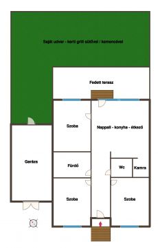 - az ingatlan lakóterülete: 61 nm + 18 nm garázs + 29 nm fedett terasz