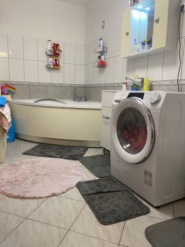 A fürdőszoba a korszellem szerinti ugyancsak megkímélt állapotú.