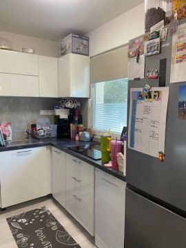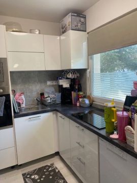 A konyhában elektromos tűzhely található, a konyhabútor megkímélt állapotban van.