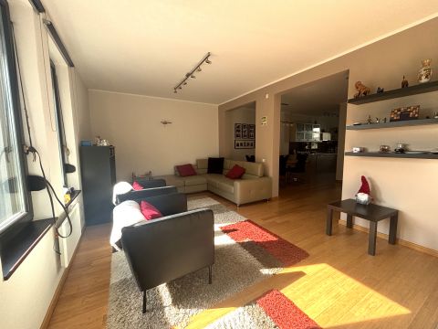 Napfényes, nappali, ebédlő, konyha, jól átgondolt elrendezés, modern, mégis otthonos hangulat