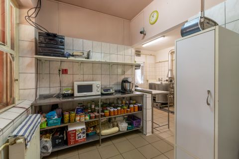 A 104 nm alapterületű épület alsó szintjén jelenleg egy vendéglátó egység van kialakítva, konyhával, fedett és szabadtéri vendégtérrel, mosdókkal és kb. 300 nm parkolóval. A konyhai berendezések szintén beletartoznak a vételárba.