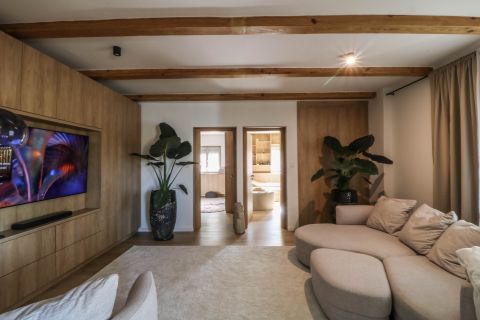 Lépjen be ebbe a hangulatos, mégis modern otthonba, ahol a hagyományos parasztház jelleg elegánsan ötvöződik a modern design elemekkel. A tágas és világos nappalit egy meghitt kandalló teszi még otthonosabbá a hűvösebb estéken. A nyári hónapokban pedig a klíma gondoskodik a kellemes hőmérsékletről. A praktikusan kialakított konyha minden mai igényt kielégít, és tökéletes helyszíne lehet családi összejöveteleknek vagy baráti vacsoráknak.