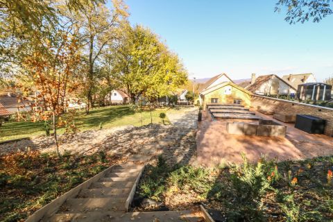 Az ingatlanhoz tartozó borospince kiváló lehetőséget nyújt a borok tárolására és a borozás meghitt élményének megélésére. A parkosított kert nem csak a szépségéről híres, de a benne található medencével egy igazi nyári menedéket biztosít a forró napokon.