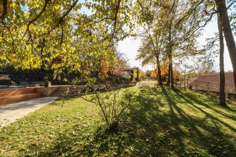 Az ingatlan 8000 m2-es parkosított kertet és medencével, gyümölcsössel, játszótérrel felszerelt igazi családi otthon.
