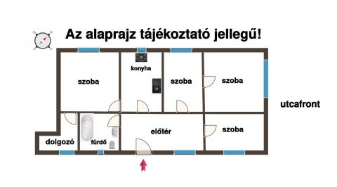 - Lakóterülete 81 m², mely egy nappaliból, 2 szobából, 2 félszobából, konyhából, fürdőszobából és előszobából áll.
