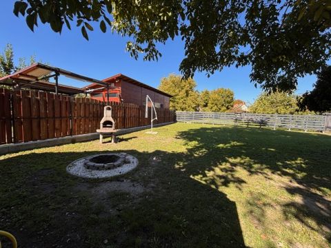 A 628 m2 kert körbekerített, az udvar hátsó részében pihenőrész, kerti sütögető található, de elegendő hely van itt egy udvari medence kialakításához is.