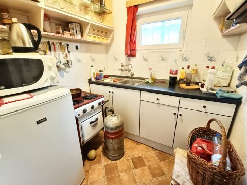 Fűtése kandallóval és gázpalackos konvektorral megoldott, így a hűvösebb időszakban is használható.