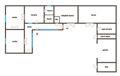 - melléképületben: mélyített kamra, kamra, nyárikonyha, garázs, ólak