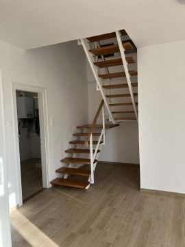 Az emeletre egy rendkívül stabil, biztonságos, fémvázas - falépcsőn lehet feljutni a közlekedőbe, ami újra lett burkolva.