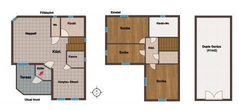 A fűtésrendszer 2 külön körön biztosított a szintek között!