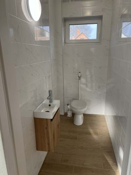 - a földszinten teljesen új komplett fürdőszoba kialakítás, burkolás, csempézés és új szaniterek beépítése valósult meg,