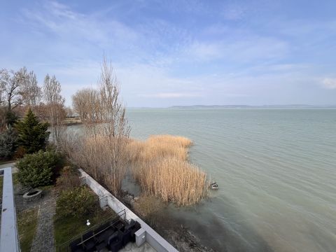 A nappaliból szinte karnyújtásnyira van a víz akár belelógathatjuk a lábunkat a Balatonba, miközben élvezzük a páratlan panorámát. A közvetlen kapcsolat a vízzel valóban különleges életérzést nyújt.