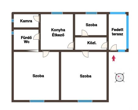 - Telek: 548 nm-es, összközműves, melyen nyárikonyha, tárolásra alkalmas melléképület, szőlő és gyümölcsfák találhatóak.