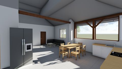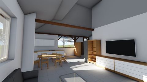 A valaha élelmiszerboltként működő épület, újra lett gondolva, tervezve, s az eredmény egy összkomfortos, tágas, napfényes családi ház.
