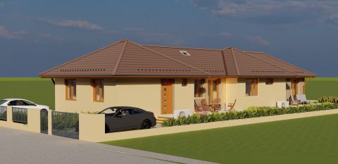 Telek területe 335 m2, az ingatlan szabadon álló építkezés így a bejárat jobb és bal oldalt külön leválasztva. Kényelmes praktikus legjobb választás.