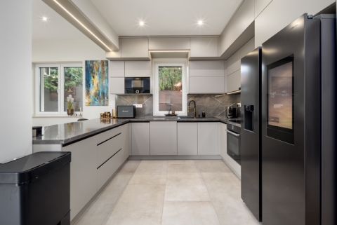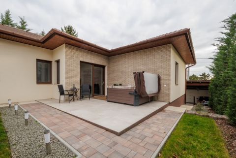 - Amerikai konyhás nappali, 4 szoba, 2 fürdőszoba, vendégmosdó, mosószoba, kamra, borospince