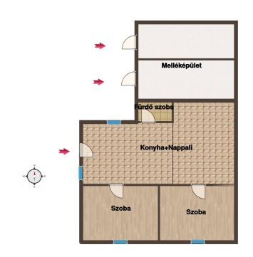 A főépület mellett egy külön melléképület is található, amely három helyiségből áll és felújítás után több funkcióra is alkalmas lehet (például tároló, műhely vagy vendégszoba).