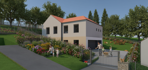 Az udvarra belépve a szemet az utcafronti 3D kerítés, a térkövezett gyalogos és gépkocsi bejáró fogja meg. A gépkocsitárolásról szekcionált garázskapuval ellátott garázs gondoskodik, az elektromos nagykapu tovább növeli a kényelmet. Otthona környezete nemcsak szép, de biztonságos is, köszönhetően a megbízható kivitelezésnek és az elővigyázatosan megtervezett építési anyagoknak, mint a 30 cm vastag Porfix falak, a 15 cm vastag EPS hőszigetelés és a 30 cm vastag üveggyapot tetőhőszigetelés.