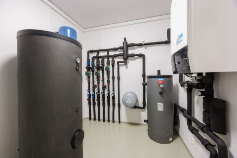 - Daikin hőszivattyú padlófűtéssel, mennyezet hűtéssel, fan coil rásegítéssel