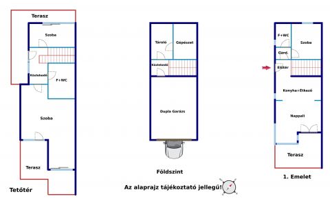 Az ingatlan földszint, emelet, tetőtér kialakítású.