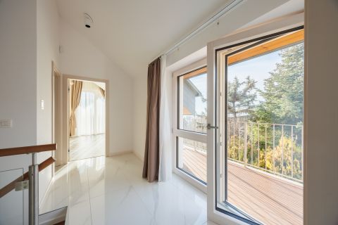 A központi élettértől elkülönülten, a tetőtérben tágas fürdőszoba+WC, valamint 2 további hálószoba található ÖRÖK PANORÁMÁS teraszkapcsolattal.