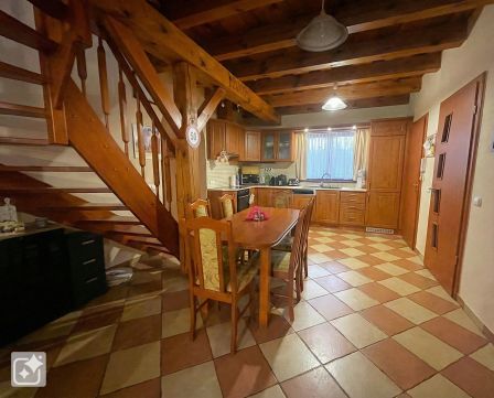 A ház fűtése gázcirkóval és vegyestüzelésű kazánnal is megoldott, így gazdaságosan fenntartható. A dupla garázs és az alápincézett kialakítás bőséges tárolóhelyet biztosít.