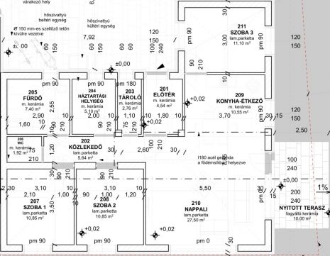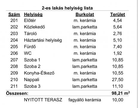 - Lakótér 95,45 m² + nyitott terasz 10 m²