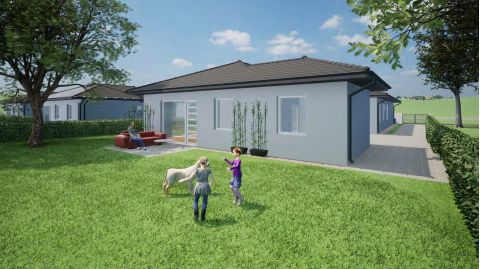 Nyíregyháza Orosi út közelében, Lakóparki környezetben, igényes, szép családi házak szomszédságában, komoly referenciával rendelkező kivitelezőtől eladó egy 450 m² -es telekre épülő, 98,21 m² -es, nappali - amerikai konyha + 3 szobás új építésű IKERHÁZ.