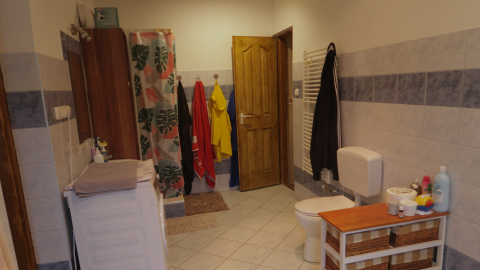 A fűtésről gázkazán gondoskodik, a nappaliban klíma biztosítja a kellemes hőmérsékletet.