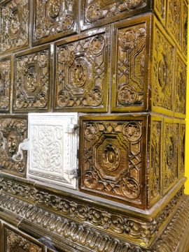 - Az étkezőben egy egyedileg tervezett és épített cserépkályha biztosítja a meleget többek között